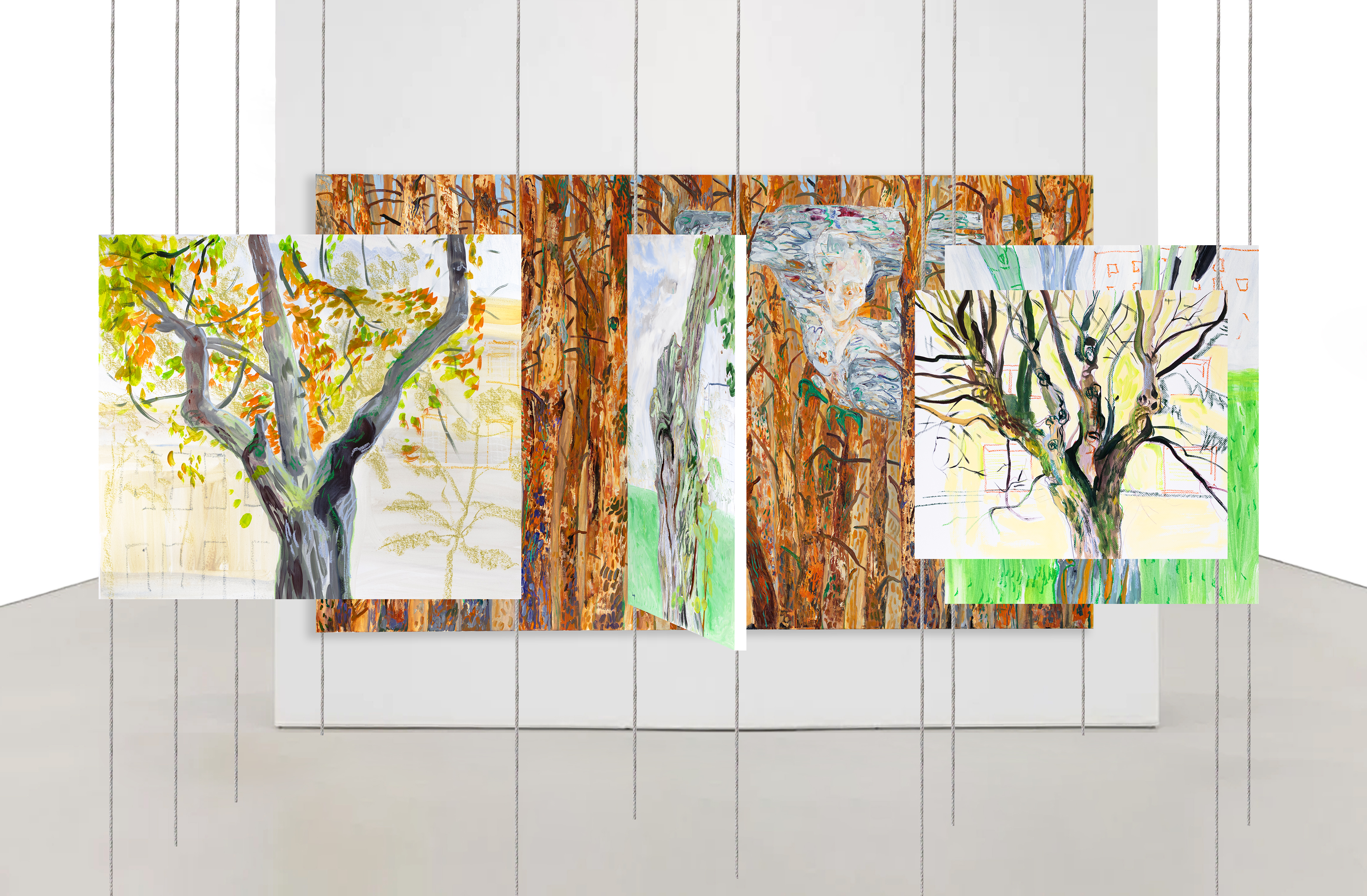 Yet the fragmented nature of our perception, thinking, and knowledge makes it impossible to see the Forest as a whole. The edges of the canvas curl inward; the Forest obscures itself, and on the back of the canvas, the Reverse side of the Forest emerges — abstractly referencing its root system. Ultimately, the project questions whether the Forest — as a metaphor for meaning — can ever be fully seen, or only intuited through its fragments.
