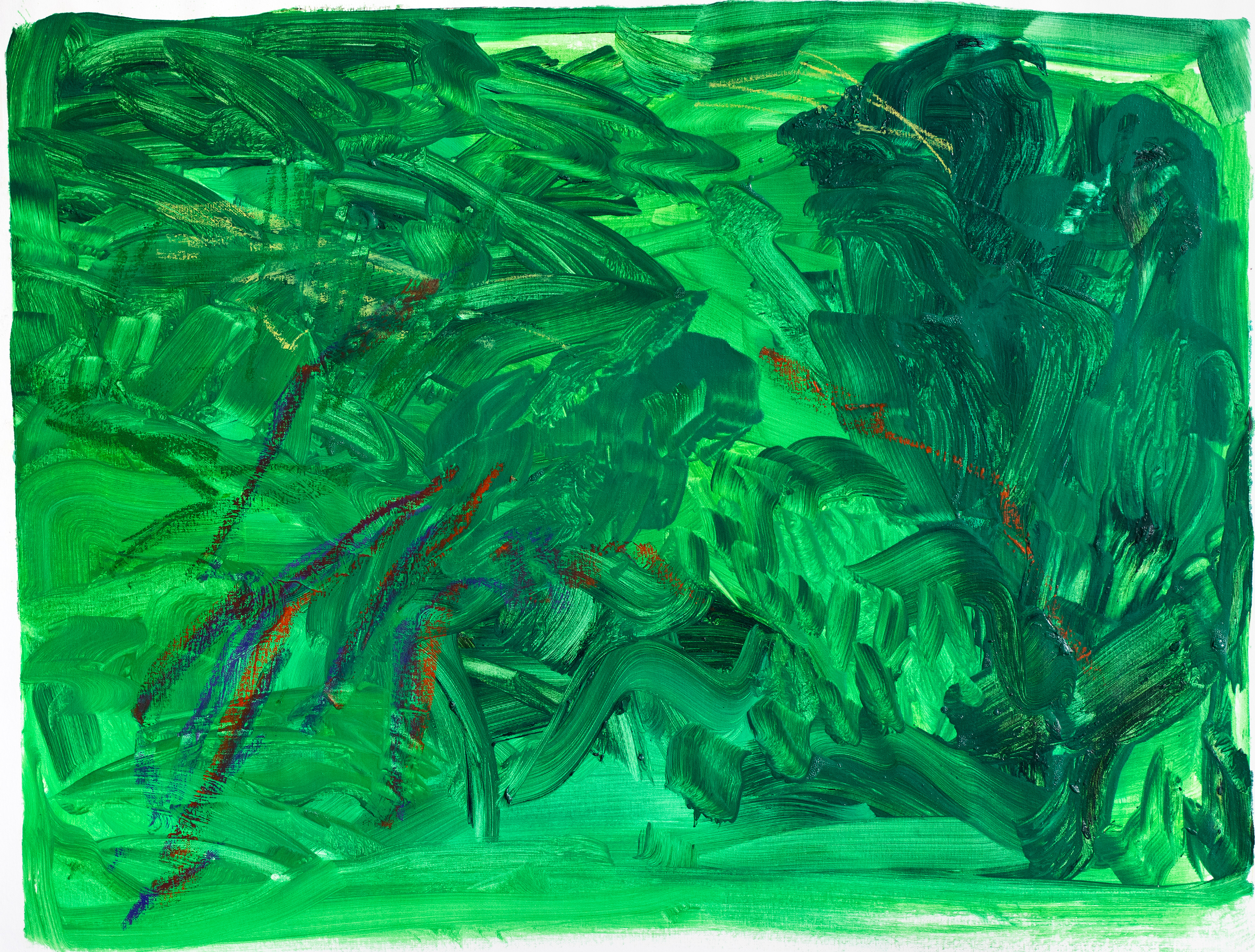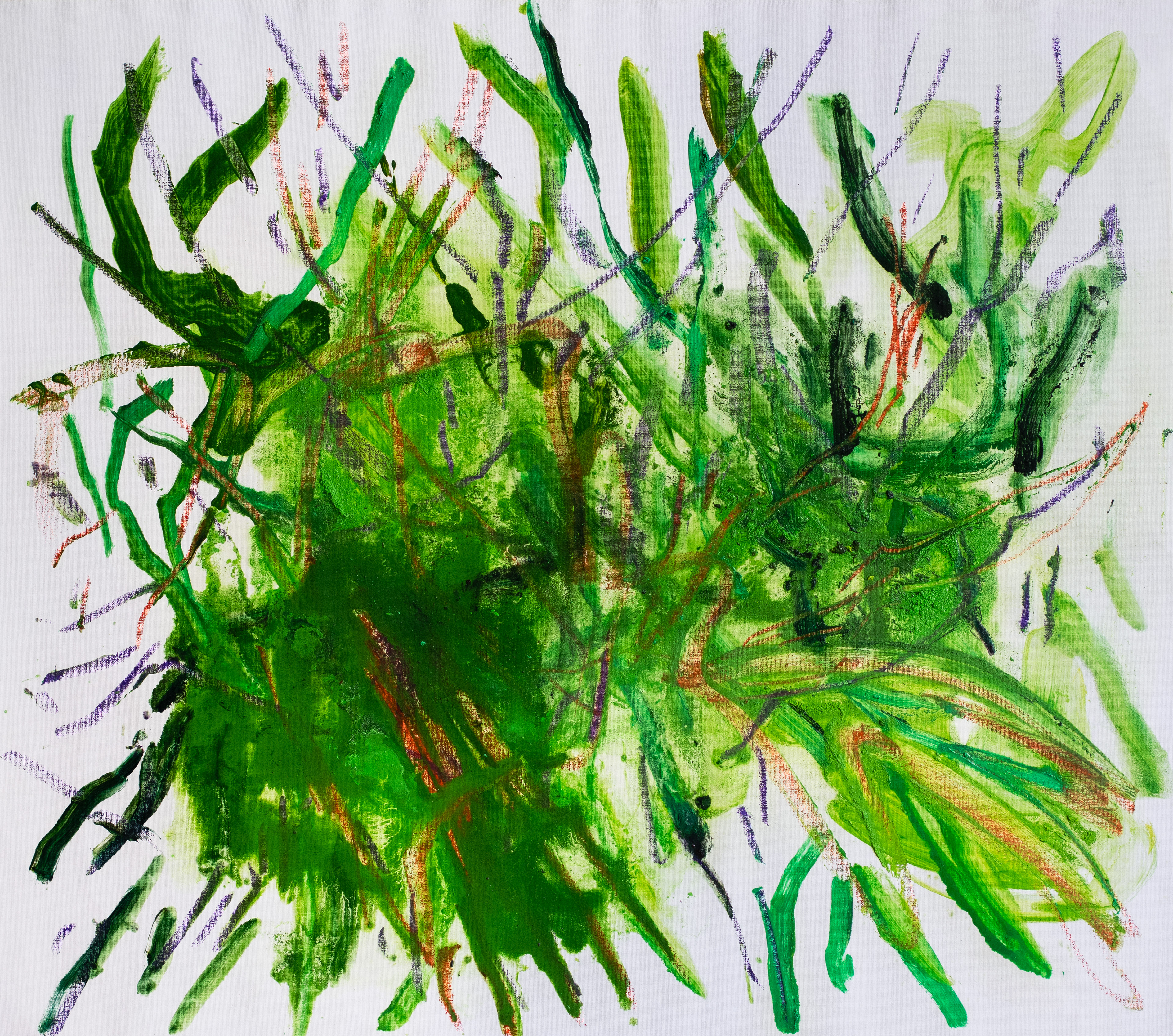 Deeper still lies the Thicket. With its wild, unrestrained greens in varied shades, it floods the canvases with expressive abstraction. I consider the heart of this elemental force the ideal place for reflection and for forming a renewed image of the world. It brings together fragments of reality, memory, myth, and the unconscious into a kind of fresco — a synthesis of inner perception.
