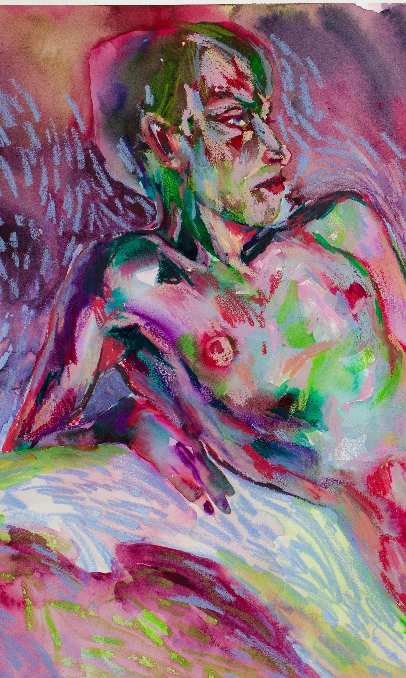 The work will be executed in oil on canvas. The edges of the canvas will extend beyond the stretcher and curl inward,
